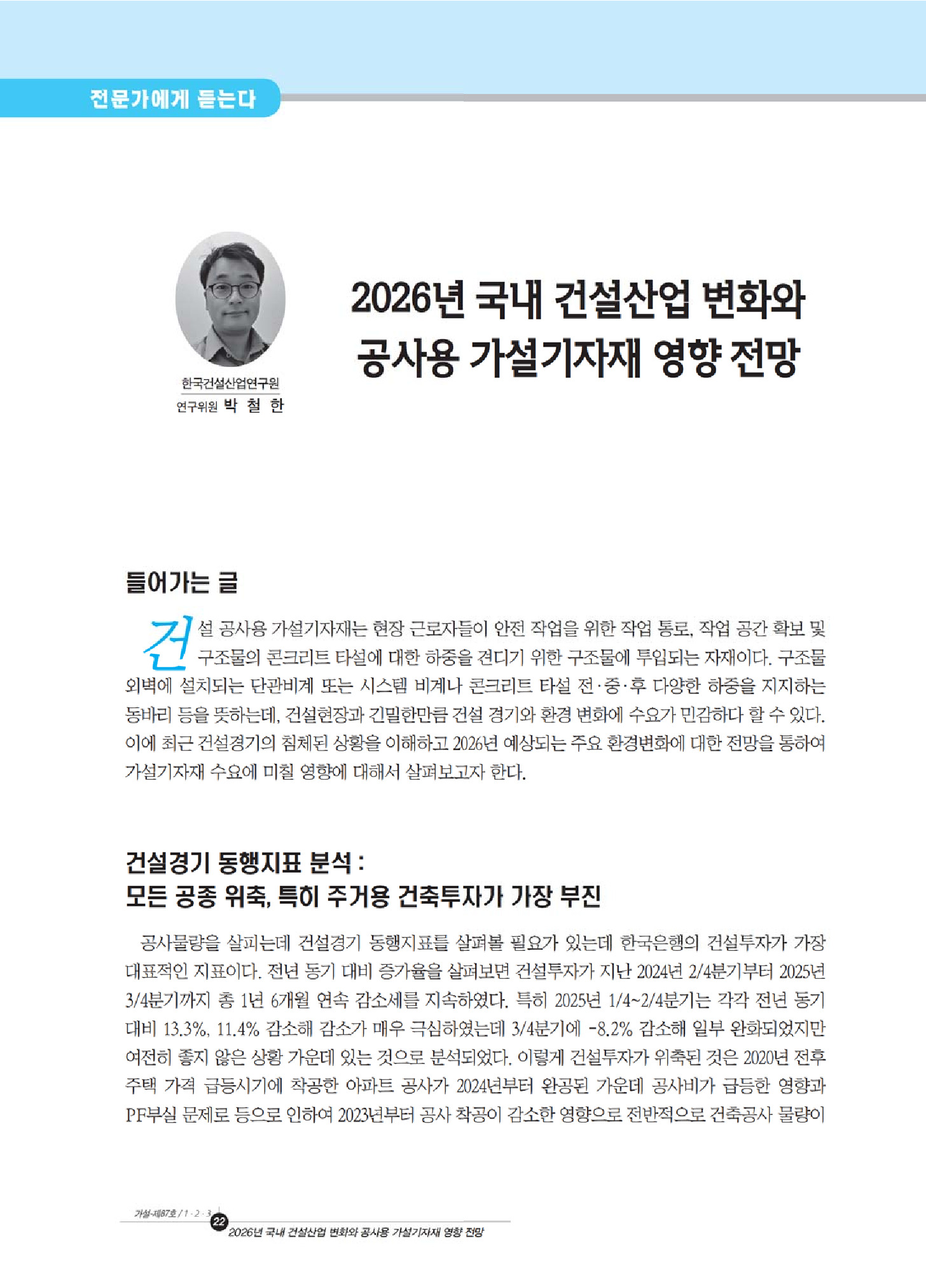| Column | 2026년 국내 건설산업 변화와 공사용 가설기자재 영향 전망 |