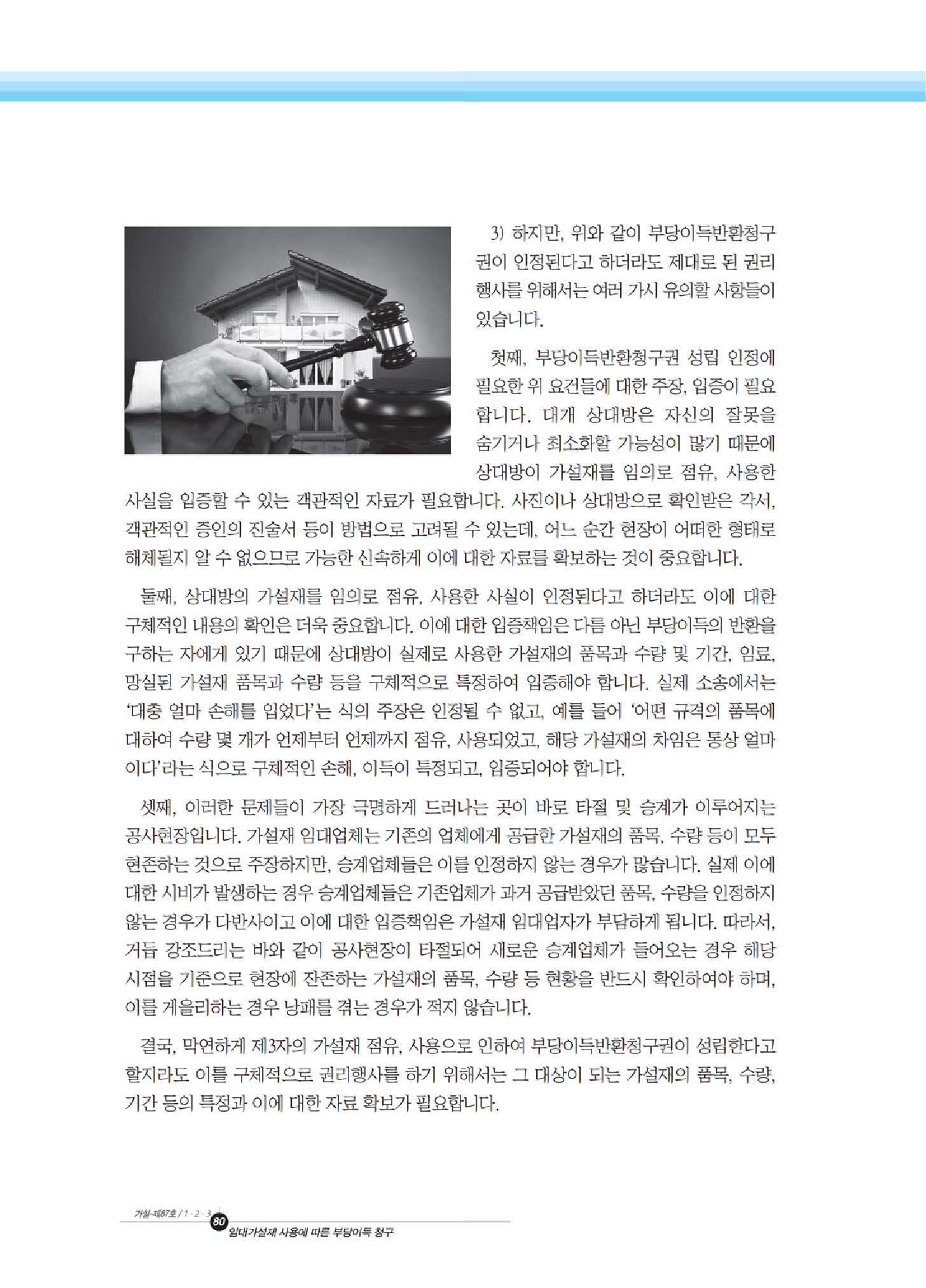 | Issue | 임대가설재 사용에 따른 부당이득 청 |