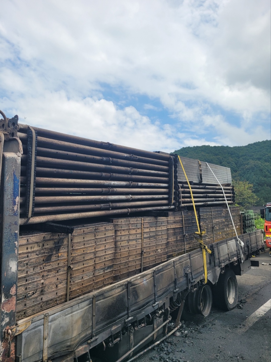 적재함에 실려있던 유로폼, 파이프서포트, 각파이프가 화재 피해를 입었습니다.