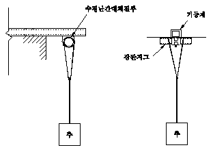 나. 수평 난간대 체결부의 강도시험은 그림 3과 같이 상부의 수평 난간대 체결부에 적합한 강관 A를 연결하고 여기에 160㎏의 추를 매달아 수평 난간대 체결부의 파괴유무를 조사한다. 이 경우 매다는 추에는 충격이 가해지지 않도록 해야 하며 수평 난간대 체결부를 나사로 조절하는 방식인 경우에는 볼트 조임을 표 4의 값을 표준으로 한다.