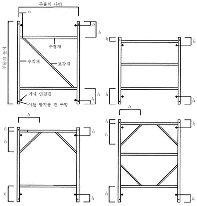 비 고 나비란 주틀 수직재의 중심 사이의 거리를 말하며, 높이란 수직재의 길이를 말한다.