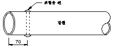 나. 강관의 양 끝에는 조립용 핀이 있어야 하며 강관의 양 끝에서 조립용 핀과의 간격은 70㎜이어야 한다.