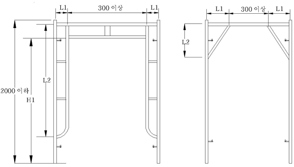 1) 보강재는 작업자가 이동시에 지장을 주지 않는 구조로 부착되어야 하며, 횡가재에 부착되는 보강재와 보강재 사이의 간격은 300㎜ 이상일 것