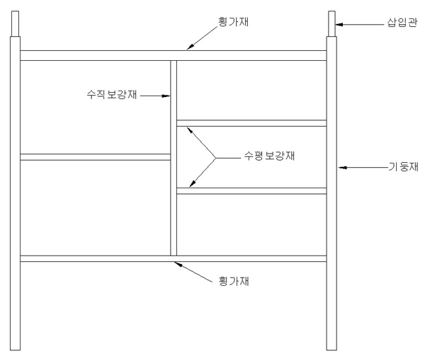 가. 주틀의 압축시험은 그림 4와 같이 상부보 B 및 하부보 B, 가이드 슬리브와 가이드 파이프, 심금 B 및 나이프에지와 나이프에지 패드를 사용하여 시험기 상·하의 가압판 중심에 주틀의 중심을 일치시킨 상태에서 주틀의 중심선상에 하중을 가하여 하중의 최대값을 측정한다.(이 경우, 나이프에지의 방향은 횡가재 방향과 평행하게 부착되어야 하며 재하 속도는 분당 8㎜ 이하로 한다)