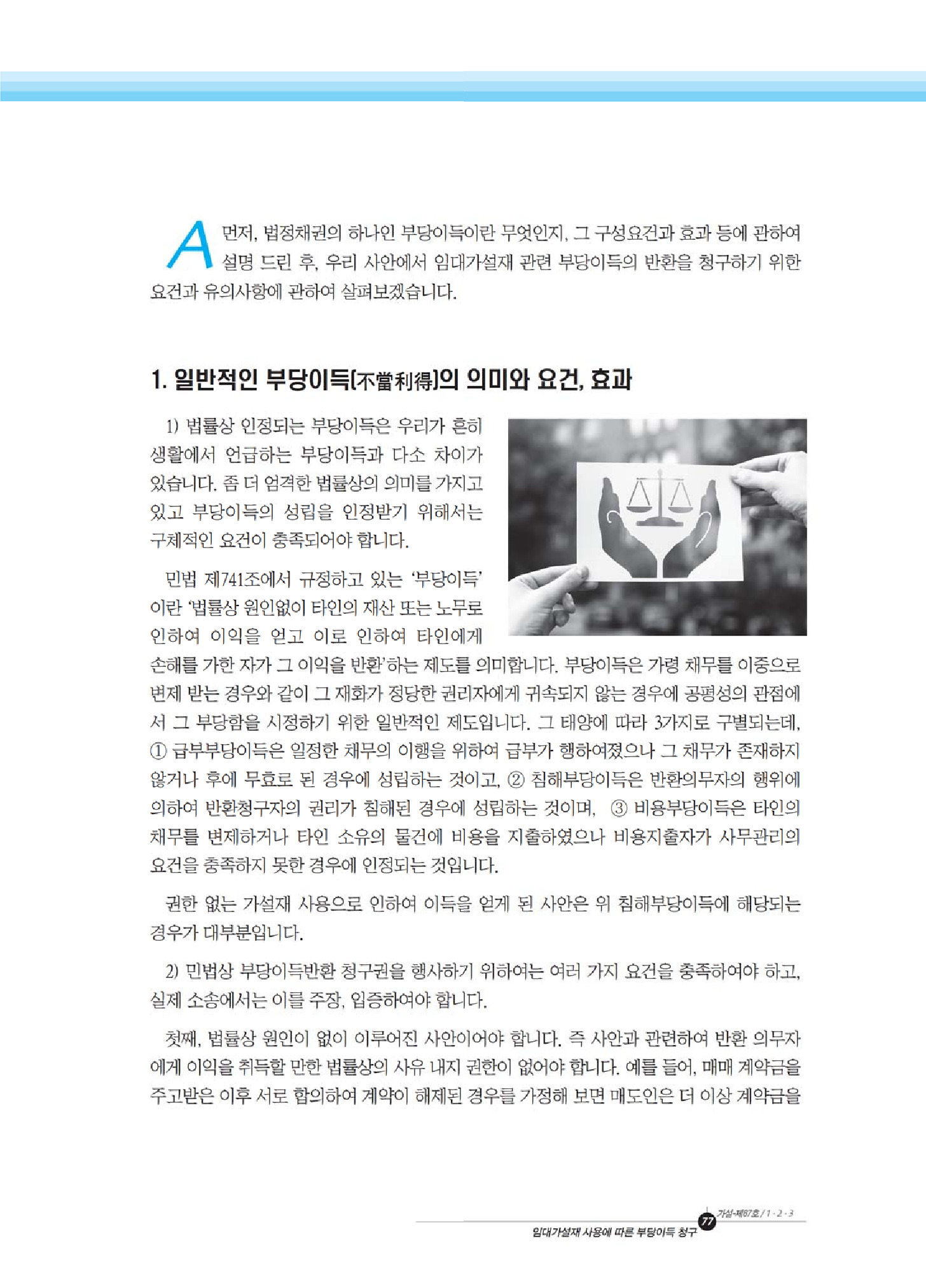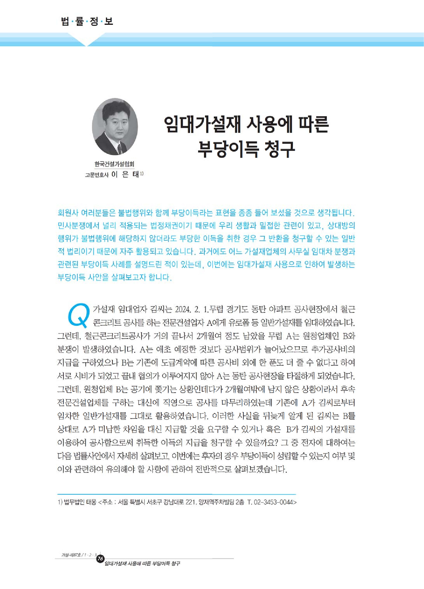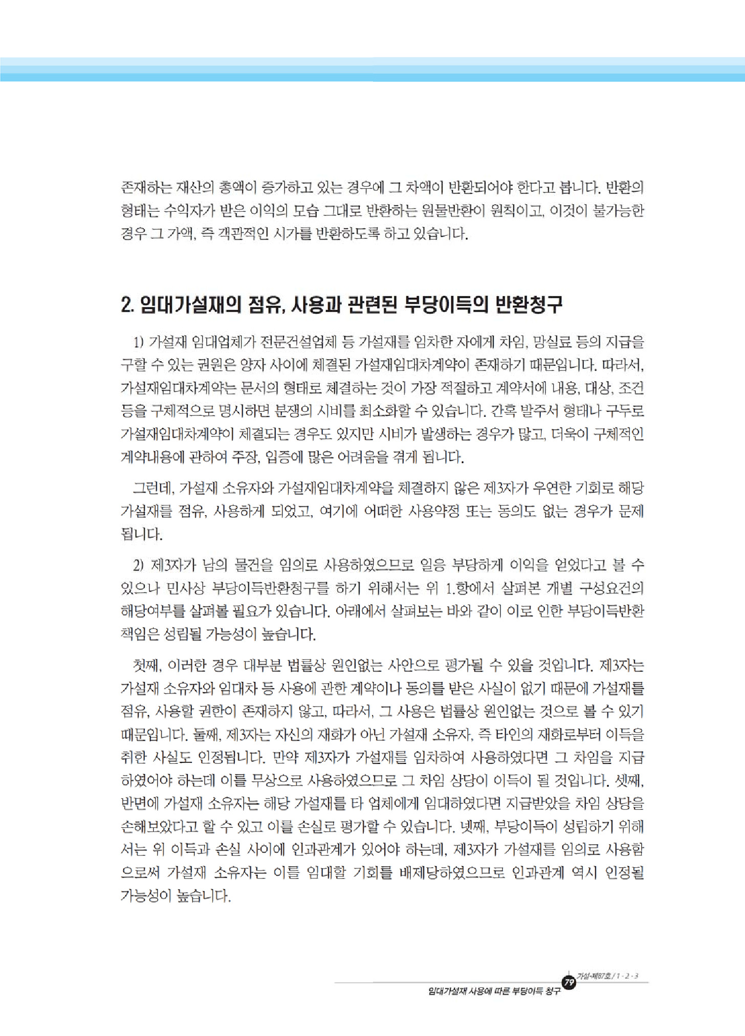 | Issue | 임대가설재 사용에 따른 부당이득 청 |